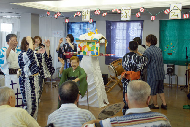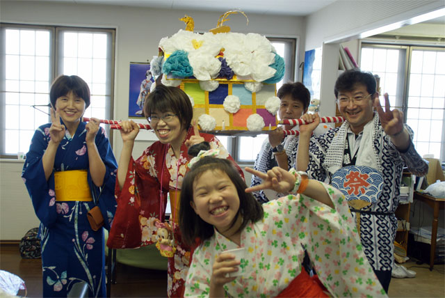 スタッフ手づくりの神輿が納涼会を盛り上げます。