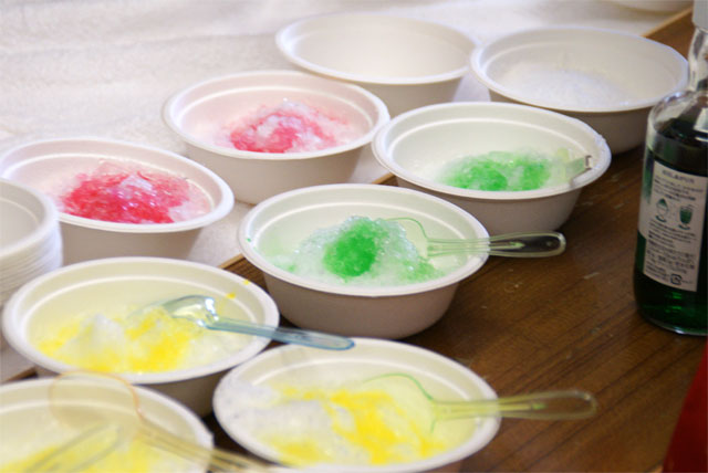 お茶やかき氷が振る舞われました。 スタッフの浴衣姿もバッチリですね。