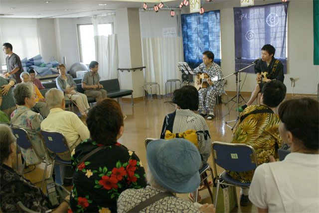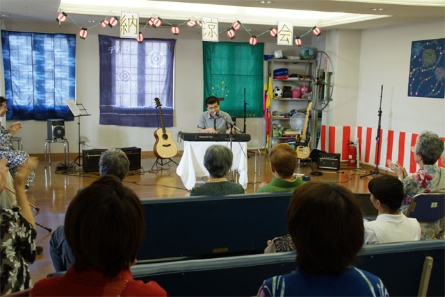 送迎の順番待ちの時間には、ギター演奏や、キーボード弾き語りなど